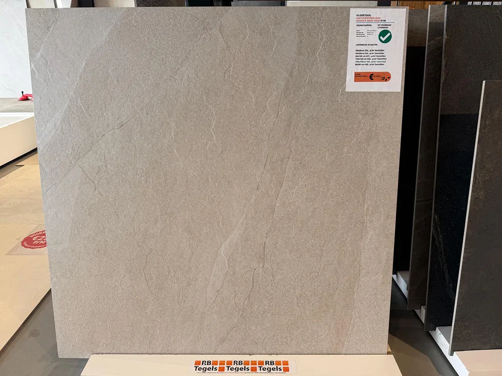 Natuursteenlook vloertegel 100×100 cm natuursteenlook Ardosia Beige Grijs R146 is het perfecte alternatief voor liefhebbers van natuursteen vloeren. Het verschil is dat ze gemaakt zijn van keramisch, maar niet de nadelen hebben van echte natuursteen. Onze keramische natuursteenlook tegels zijn perfect te gebruiken in veel verschillende stijlen, van industrieel tot lofts. Deze tegels staan goed in zowel de woonkamer, badkamer, toilet, gang of keuken.